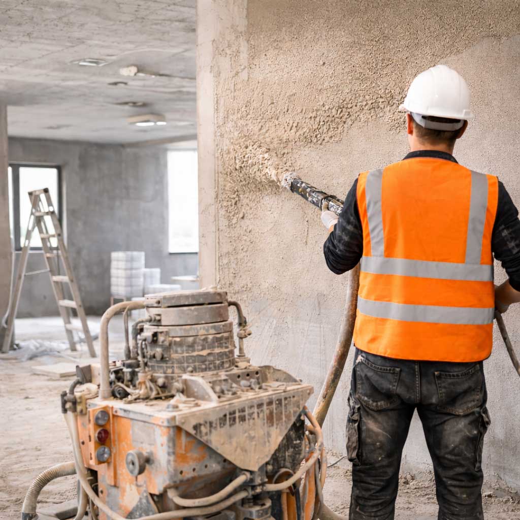 Specjalizujemy się w tynkach i wylewkach maszynowych, obsługując domy, mieszkania i inwestycje.